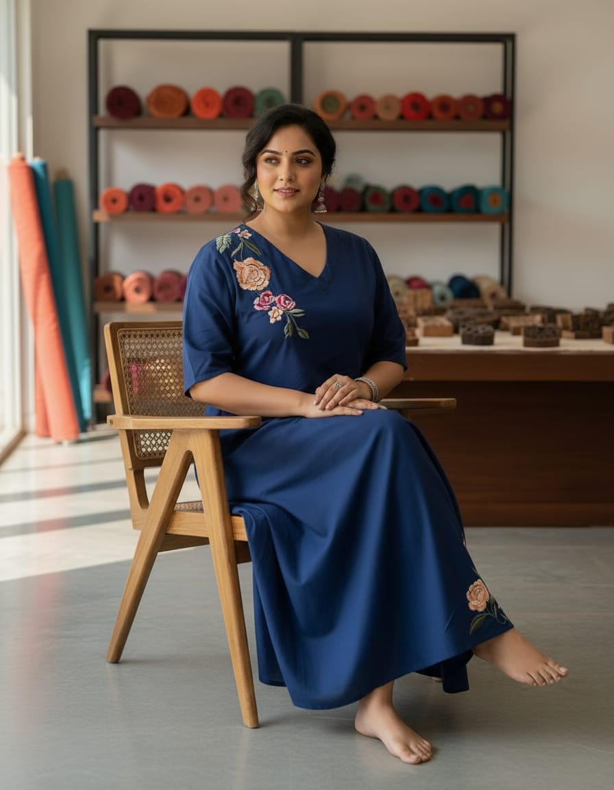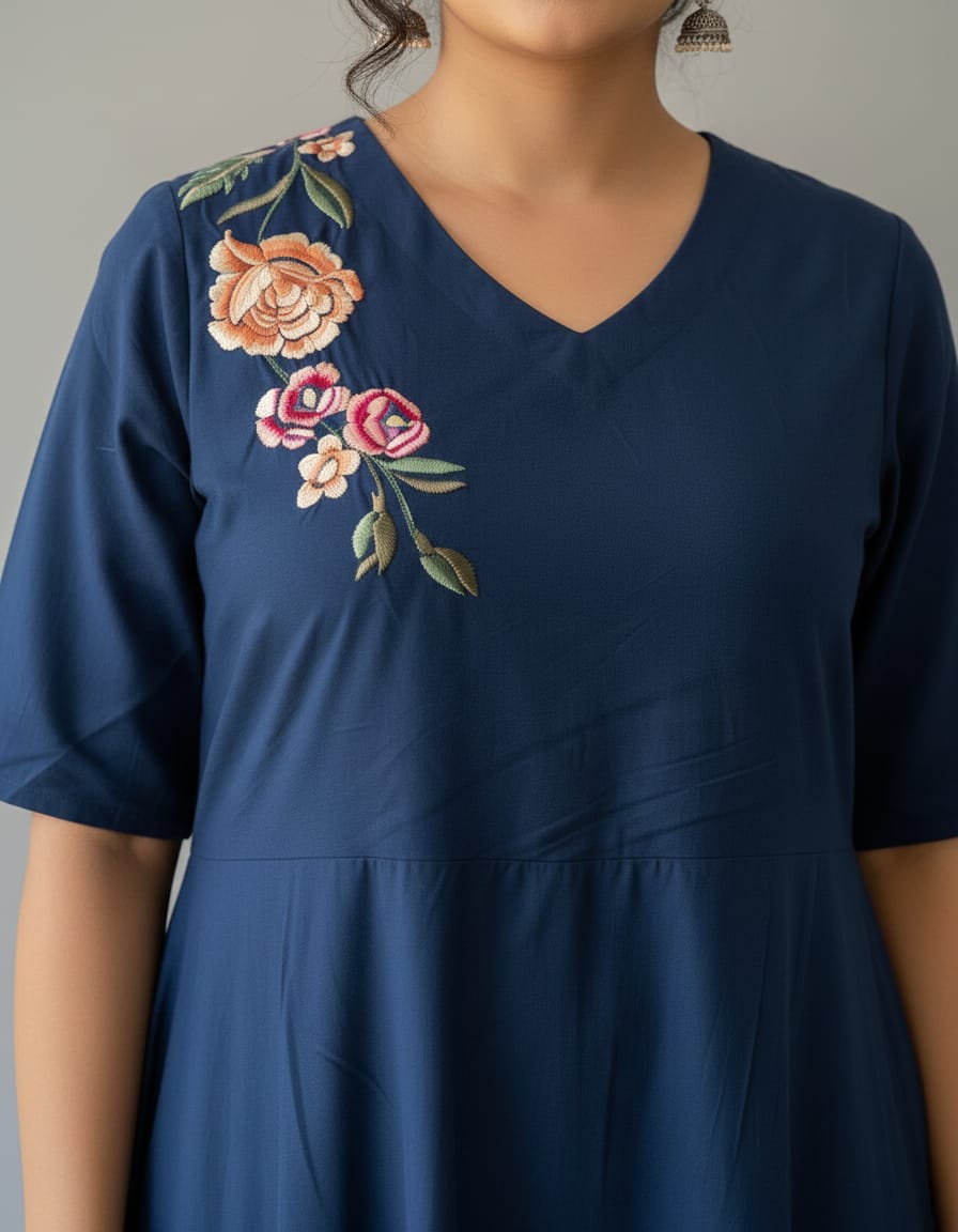 Step into timeless elegance with our Beautiful Blue Embroidered Floral Maxi Dress. Crafted from high-quality 100% premium cotton fabric, this graceful dress features delicate floral embroidery on the shoulder and hem, adding a touch of femininity and charm. Designed with a comfortable fit and a flattering silhouette, it is perfect for special occasions, casual outings, or garden parties. Elevate your wardrobe with this stylish and sophisticated piece that combines comfort with exquisite details.