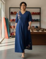Be the first to review “Elegant Blue Embroidered Floral Maxi Dress” Cancel reply